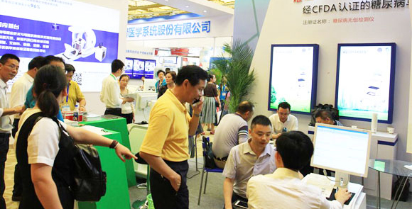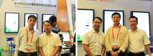 本次大会易康达展区人头攒动,异常火爆,共接待观众千余人。公司技术人员耐心的给客户做产品讲解和现场体验。“该款设备不同于市面上的其他产品,DM Scan是通过检测体内强致病因子AGE(即糖基化终产物,可通过受体及非受体途径导致糖尿病的发生和发展),进而临床应用于糖尿病的早期发现”,DM Scan的技术原理确切,是获得CFDA认证的糖尿病早期无创检测设备,得到了体验客户的一致认可,反映优良!