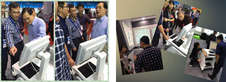 此次展会设置了中科院专馆,合肥研究院展示了“家用健康助理机器人”、“智能化中小学生近视防止系统”等科技成果,安徽易康达医疗也带着DM Scan糖尿病无创检测仪,参加了本次展会,参会的各级领导和观众对设备表现出了和浓厚的兴趣,争相体验。