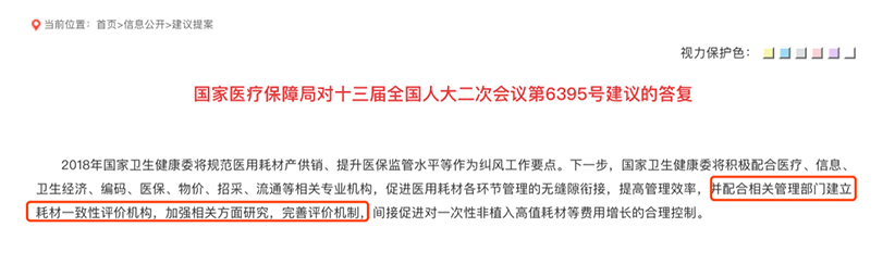 上述同一份《答复》文件中,国家医保局还表示,下一步国家卫生健康委将配合相关管理部门建立耗材一致性评价机构。