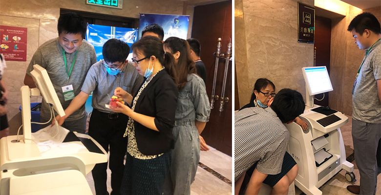 糖基化终产物(AGE)是糖尿病及其并发症重要致病因子之一,糖尿病早期无创检测技术通过检测皮肤AGE含量可提前预警糖尿病或糖尿病并发症发病风险,该检测设备目前已经在全国多地三甲医院内分泌科使用,其中包括上海市第六人民医院、北京大学第一医院、西京医院、山东省立医院等众多知名医院,为糖尿病并发症风险评估提供了新的检测方法。会议期间公司展台现场,询问体验,络绎不绝。糖尿病无创检测仪快速、无创、准确的优点给受检者留下了深刻的印象,具有较好的社会效益与经济效益。