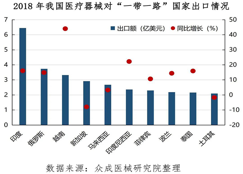 随着我国与沿线国家的经贸合作力度不断加强以及我国医疗器械产业的不断进步和发展,“一带一路”沿线国家成为我国医疗器械“走出去”重要市场。
