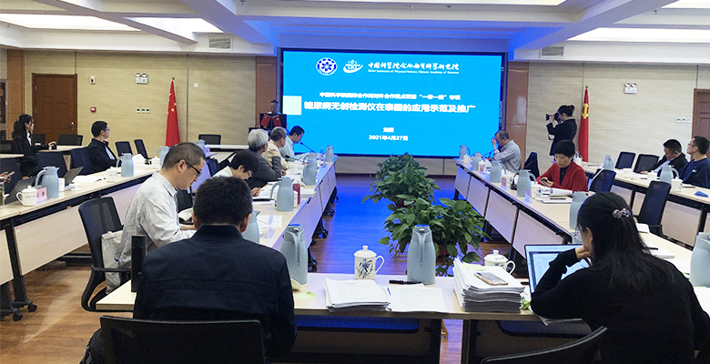 2021年4月27日,国际伙伴计划项目结题验收会在合肥举办,会议邀请了丁林院士、国际合作局综合处彭颖处长、苏州医工所唐玉国所长等9名专家,组成评审委员会。专家组经过质询,由团队承担的“一带一路”专项“糖尿病无创检测仪在泰国的应用示范及推广”顺利通过验收,专家组对项目的实施效果给予了肯定。