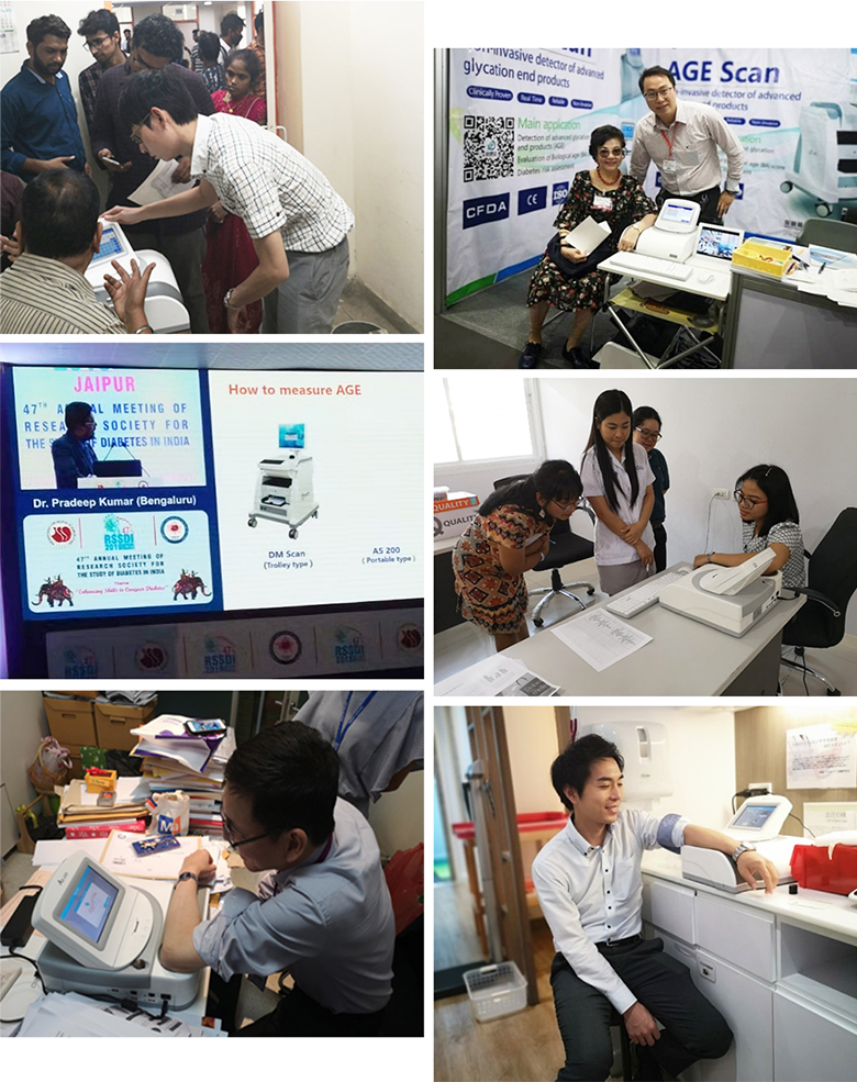 项目实施期间,课题组开展了适用于泰国人群的糖基化终产物在体光学检测技术及其临床应用研究,结果提示,AGE筛查糖尿病的敏感性达到80.3%,而文献调研发现泰国的空腹血糖筛查糖尿病敏感性仅为45.3%。除此之外,积极开展并获得了CE认证、泰国销售许可,共建立包括泰国玛希隆大学附属拉玛医院、泰国朱拉隆功国王纪念医院、帕雅塔2国际私立医院、外府纳莱苏公立医院、DYM体检中心等在内的5家应用示范点,取得良好的示范效果,并成功拓展“一带一路”区域的销售合作,进驻印度,参展第47届印度研究型糖尿病协会年会,邀请专家在大会上做学术报告。总之,通过国际科技合作,实现了共赢。把具有完全自主知识产权的糖尿病无创检测新技术推广至“一带一路”地区,积极促进了我国科技走出国门,充分发挥了“带路”作用,为树立我国医疗产品的“品牌效应”做出了贡献。
