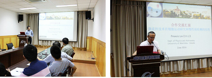 访问期间,林远教授以“微流控技术在细胞运动研究和慢性病检测的应用”为题,为大家带来了一场精彩的学术报告。报告由刘勇研究员主持,来自研究院多个研究单元的科研人员、研究生及安徽省立医院的临床医生一同聆听了报告。林远教授首先向大家介绍了其研究团队概况及人员组成,并详细阐述了微流控技术在细胞迁移运动领域的应用进展及其团队最新的研究成果,其中基于纸基微芯片的蛋白检测系统引起了与会者的热烈讨论。整场报告生动、精彩,内容丰富。