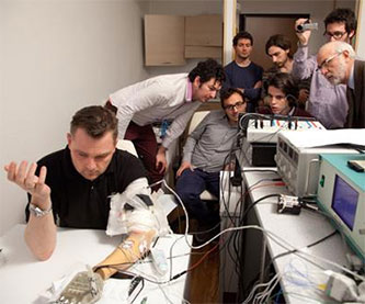 瑞士洛桑联邦理工学院(EPFL)和意大利比萨圣安娜大学(SSSA)研究人员开发出了一种新型智能义肢,在指尖处装有触觉传感器,能够感知所触摸的物体。这种义肢通过与人体神经相连,能够向佩戴者反馈物体软硬以及形状等信息,从而能在一定程度上模拟人体的手部触觉。