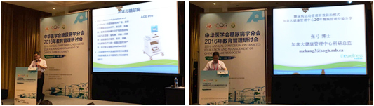 会议期间,我单位客座研究员加拿大七橡树医院健康管理中心张弓教授应邀在本次大会上做题为“糖尿病运动康复基地与团队建设”的学术报告,张弓教授在报告中介绍了DM Scan的应用研究进展,“通过光谱技术来实现糖基化终产物的无创检测,并最终应用于糖尿病的早期发现,具有无创、快速等特点。并且越来越多的证据显示AGE这个指标与糖尿病心血管疾病的关系密切,可作为健康管理中的常用观测指标”。