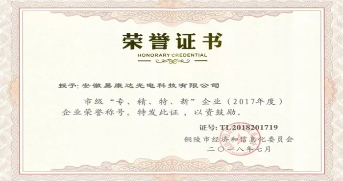 ●易康达医疗被评定为市“专精特新”企业。