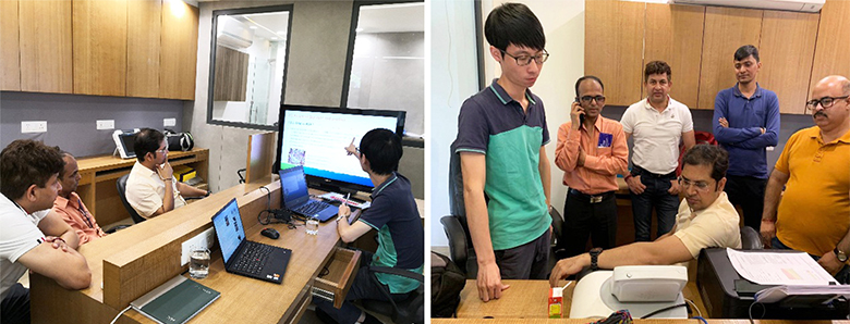 近日,团队相关研发人员应邀到访印度P.G.I.M.E.R.(Postgraduate Institute of Medical Education & Research)医院、圣雄甘地纪念医院等多家印度知名医院,与印方多位内分泌学领域的权威专家就糖尿病无创检测新技术的检测原理和临床应用情况进行了深入交流,并在印度多家医院正式装机使用糖尿病无创检测仪产品,这标志着糖尿病无创检测新技术正式走进印度。