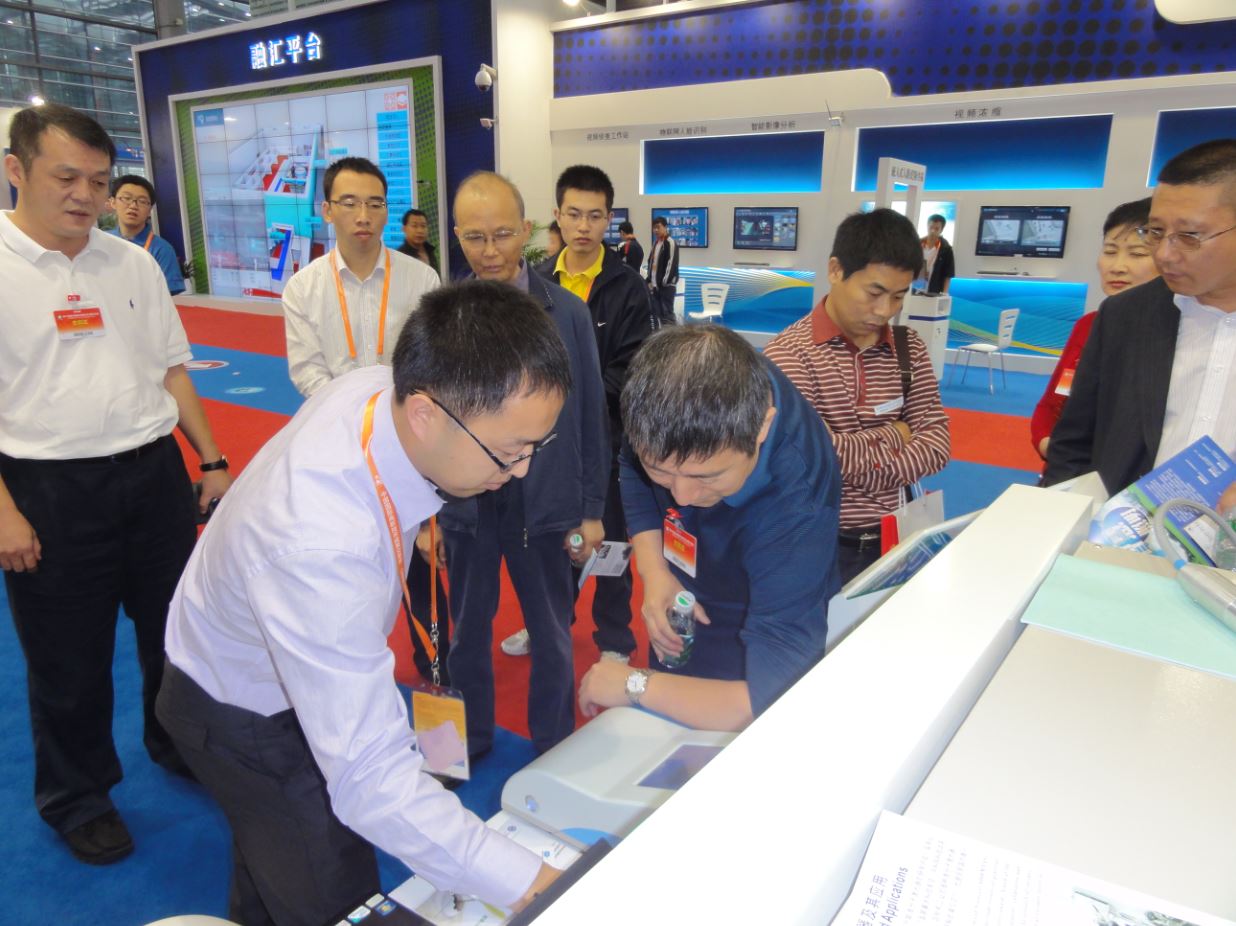 光电子室科研人员在高交会现场