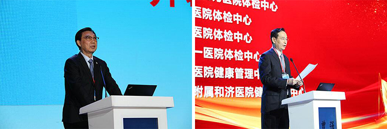 大会主席、中国健康促进基金会终身荣誉理事长白书忠在开幕式上致辞 曾强教授宣读本年度健康管理学科建设与科技创新中心单位名单
