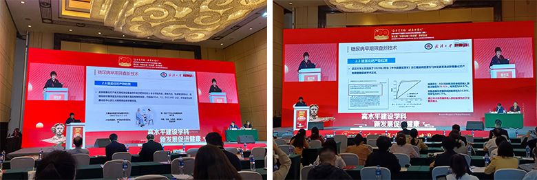 在学科建设论坛中,中华医学会健康管理学分会副主任委员、武汉大学人民医院健康管理中心主任唐世琪教授分享了题为“健康管理中心糖尿病筛查与管理”的学术报告,详细介绍了我国最新2型糖尿病防治指南(2020年版)新增内容,分享了皮肤糖基化终产物(AGE)在糖尿病早期预警的临床应用,以及与合肥物质科学研究院共同申报的科研项目及论文发表情况。