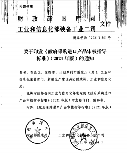 关于印发《政府采购进口产品审核指导 标准》(2021年版)文件
