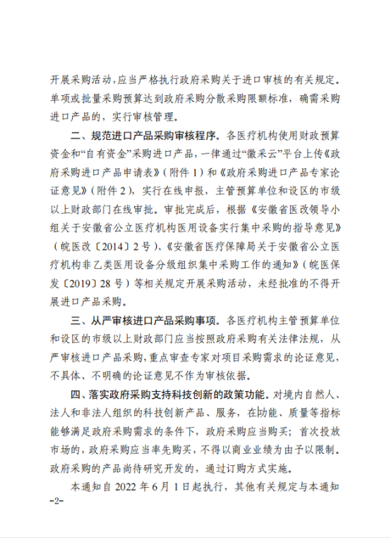近日,安徽省财政厅、安徽省卫健委、安徽省医保局联合发布了《关于规范公立医疗机构政府采购进口产品有关事项的通知》。