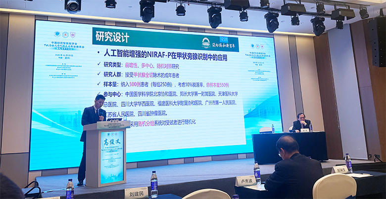 北京协和医院高俊义博士在会上发表主题演讲,深入解读了甲状旁腺检测技术的发展趋势与临床应用要点。重点介绍了近红外自体荧光检测技术在术中甲状旁腺识别与保护中的创新应用。他指出,传统检测方法存在定位精度有限、操作复杂等痛点,而新一代检测技术通过自体荧光信号的精准捕捉,可实现甲状旁腺组织的实时识别、边界定位及功能评估,显著降低手术并发症风险,提升治疗成功率。
