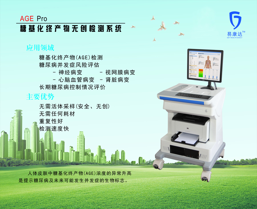 参展产品:糖基化终产物无创检测系统(AGE Pro)、糖尿病风险评估系统(DM Scan)